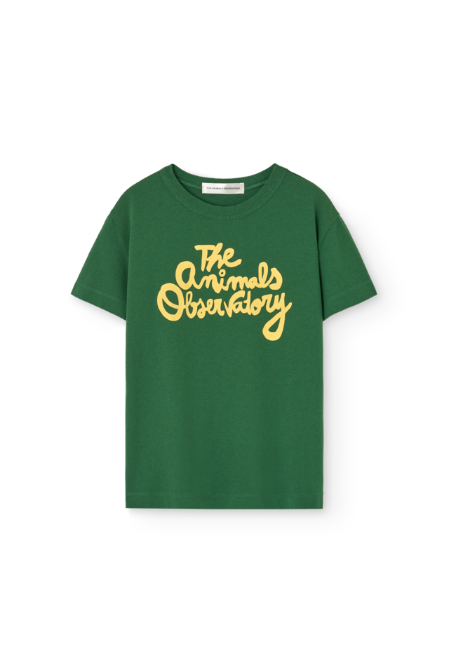 26SS【TAO】バックキャラT MUS Rooster T-Shirt THE ANIMALS OBSERVATORY 深見のあるグリーンベースのフロントに黄色の柔らかいフォントのTAOロゴ バックのイラストもとてもアーティスティックで目を引くデザイン おしゃれ感が増す一枚です ▷The model's 137cm size 8y Fit: Regular Made in: Portugal Composition: 100% Cotton Certificate: YARN GOTS