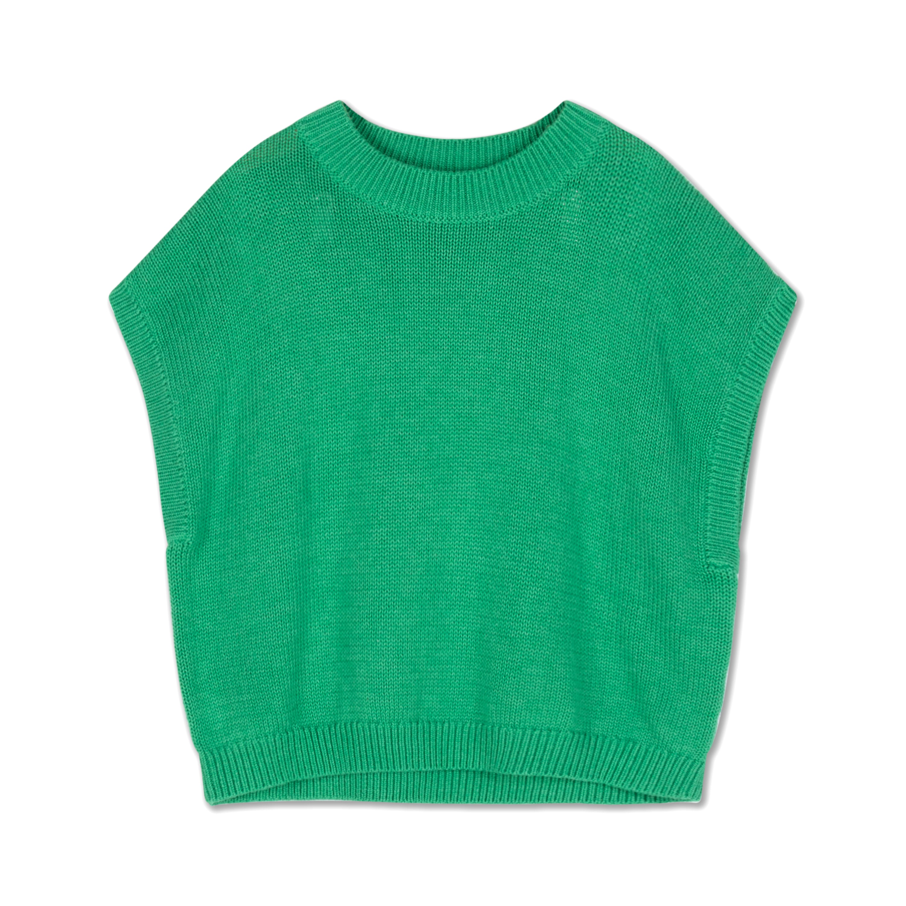 A bold, rectangular silhouette def ines this sleeveless knitted top. Ultra-boxy and effortlessly cool—an elevated basic with serious attitude.