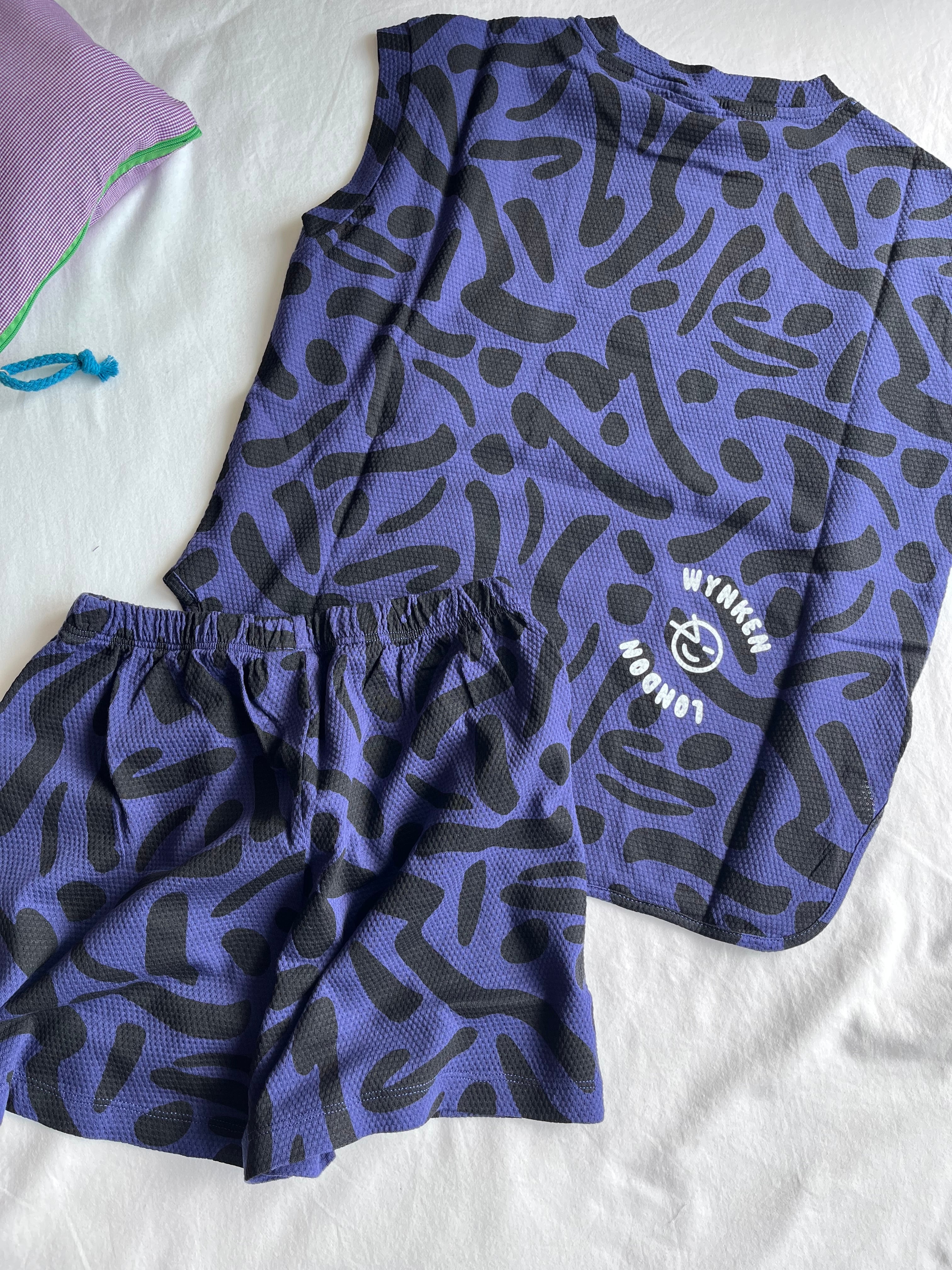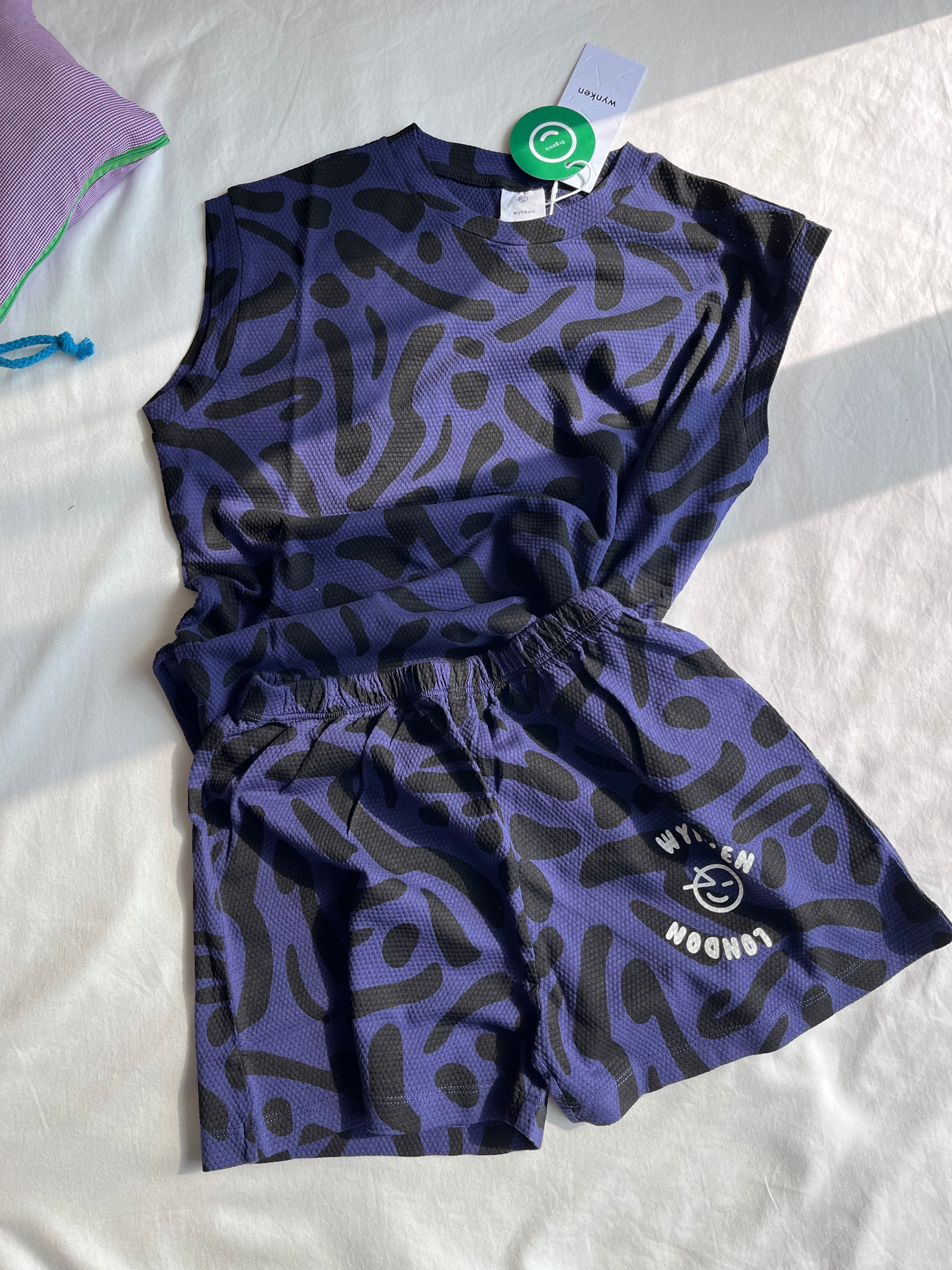 ナイトネイビーのベースに散りばめられた柄が、Wynkenらしい遊び心をプラス。